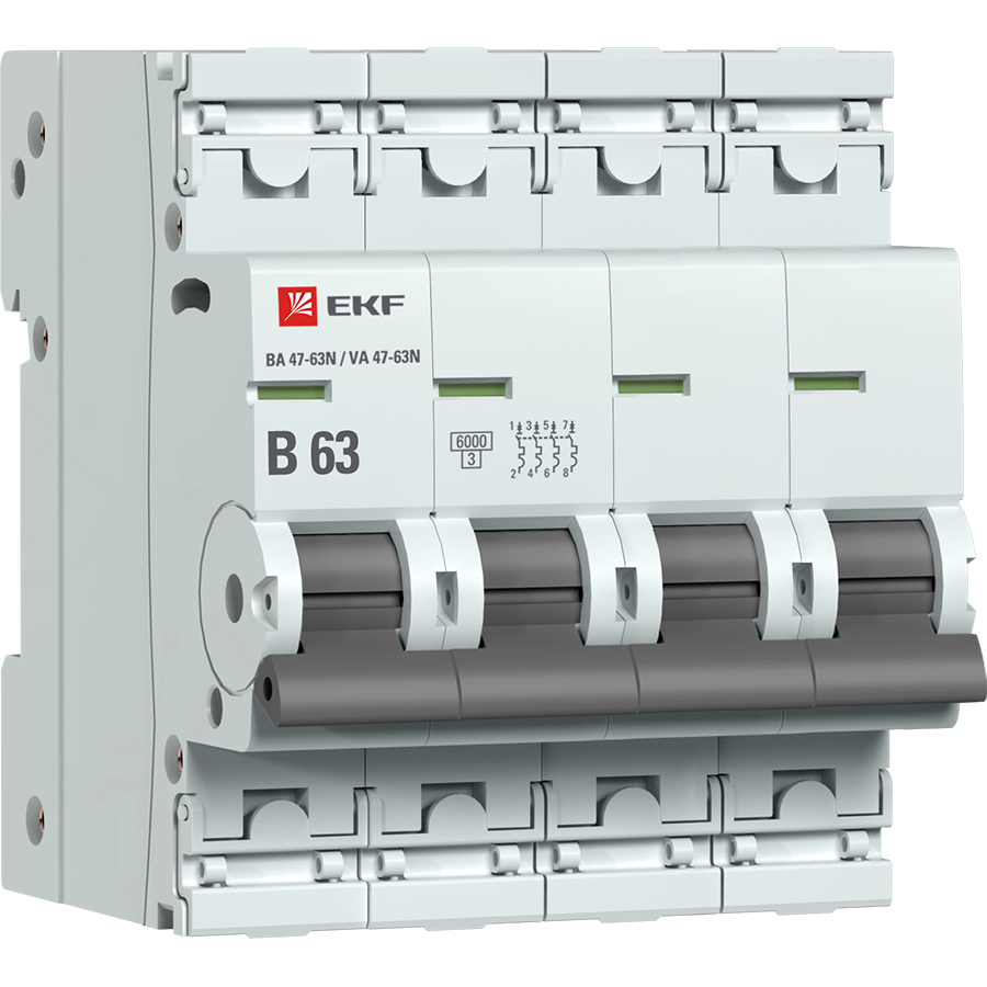 Автоматический выключатель 4P 63А (B) 6кА ВА 47-63N EKF PROxima